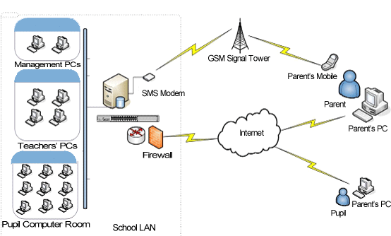 With an active RFID card attached to the pupils, the school management system can receive real-time information of the pupils in the school.The information can be delivered to their parents via GSM. The pupils can press the panic button to alarm in case of emergency, which makes it more secure and reliable than any other pupil management systems. optimized.